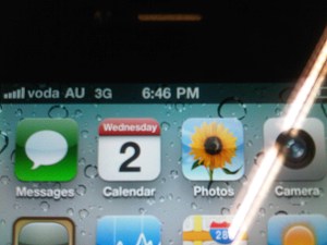 It’s a huge marketing and branding opportunity for the telcos that’s going begging – for example, a custom red iPhone case with a big logo would be a great way for Vodafone to market its brand through users of its mobile service. Looking at my phone, the only thing that brands it as Vodafone is the tiny “voda AU” at the top of the screen (pictured).